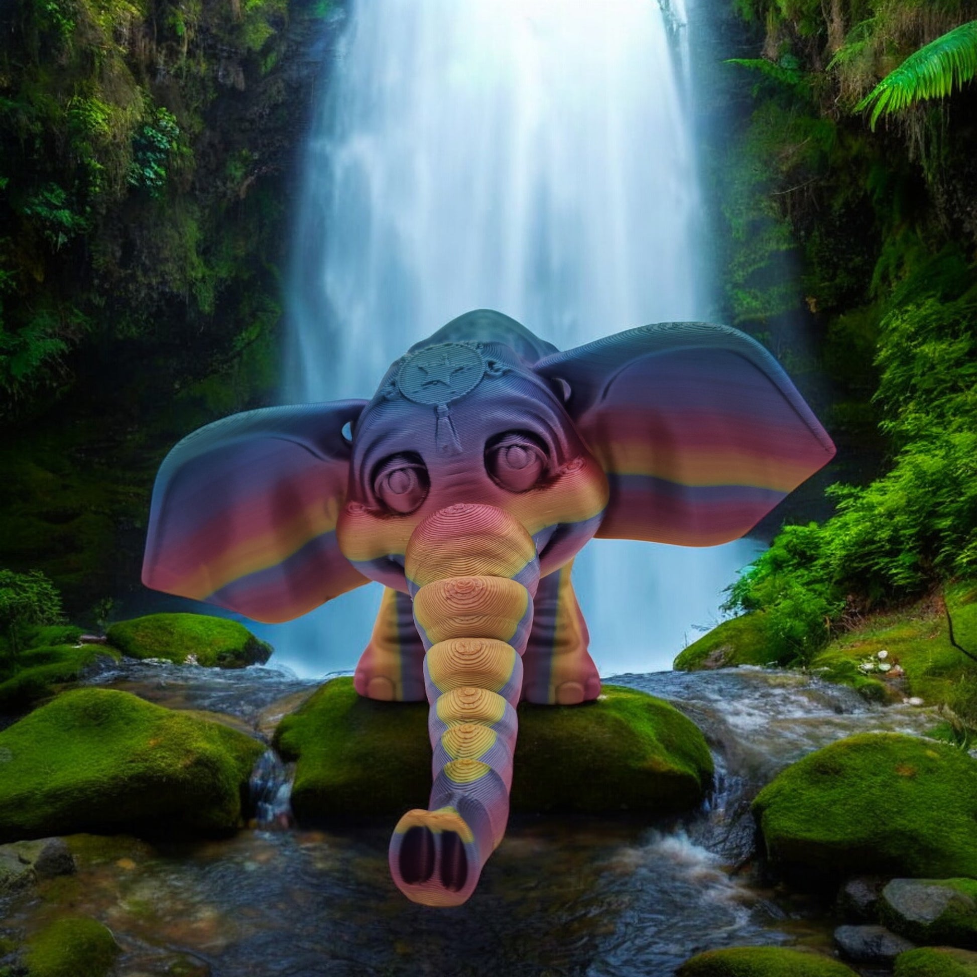 Standing 7 inches tall, this vibrant collectible blends the majesty of the elephant with a touch of festive charm. With detailed tusks, textured skin, and subtle carnival-inspired accents, it brings color and character to any collection. Choose from Warm, Cool, Neutral, or Rainbow Gradient color styles — each uniquely blended for a one-of-a-kind look.