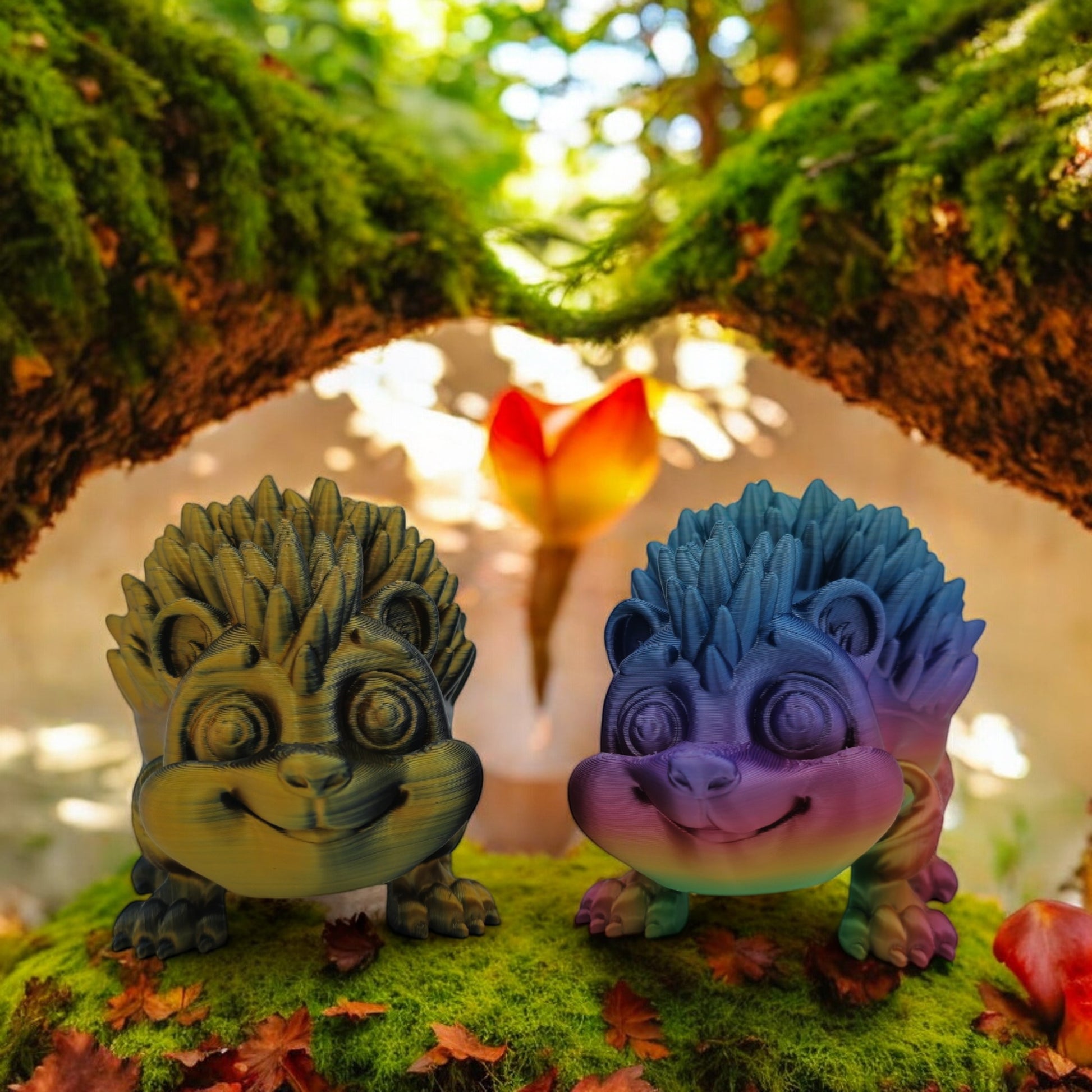 Standing 6 inches tall, this adorable collectible captures the charm and coziness of a beloved woodland creature. With its rounded shape, detailed quills, and sweet expression, it brings warmth and whimsy to any collection. Choose from Warm, Cool, Neutral, or Rainbow Gradient color styles — each uniquely blended for a one-of-a-kind look.