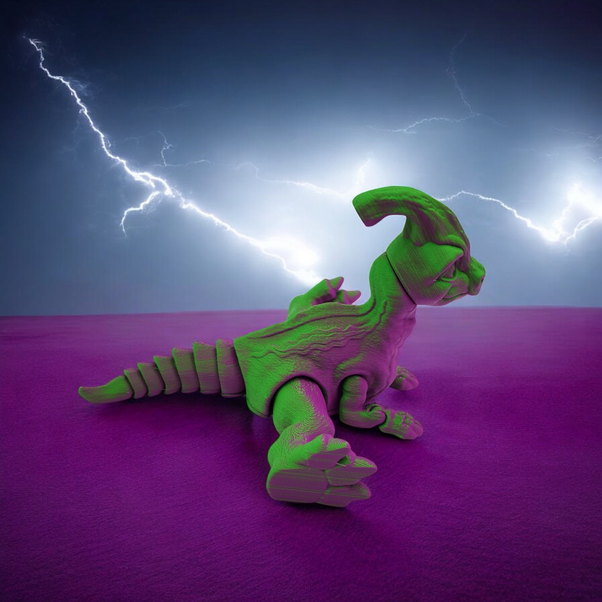 Standing 7.5 inches long, this captivating collectible showcases the gentle grace of one of prehistory’s most distinctive herbivores. With its signature duck-billed snout, textured scales, and elegant stance, it brings Jurassic charm to any collection. Choose from Warm, Cool, Neutral, or Rainbow Gradient color styles — each uniquely blended for a one-of-a-kind look.
