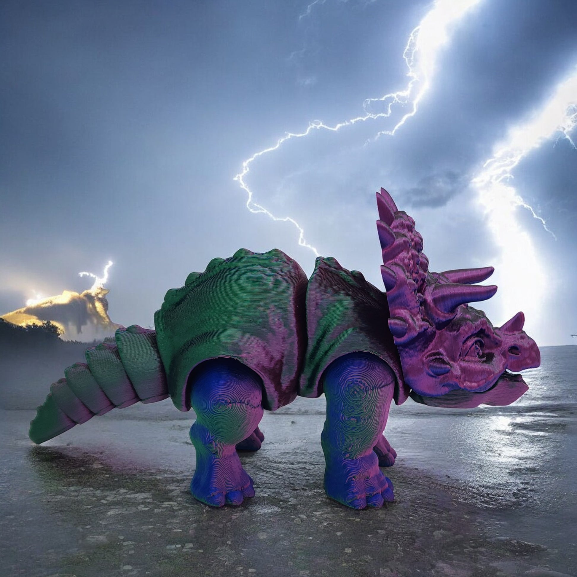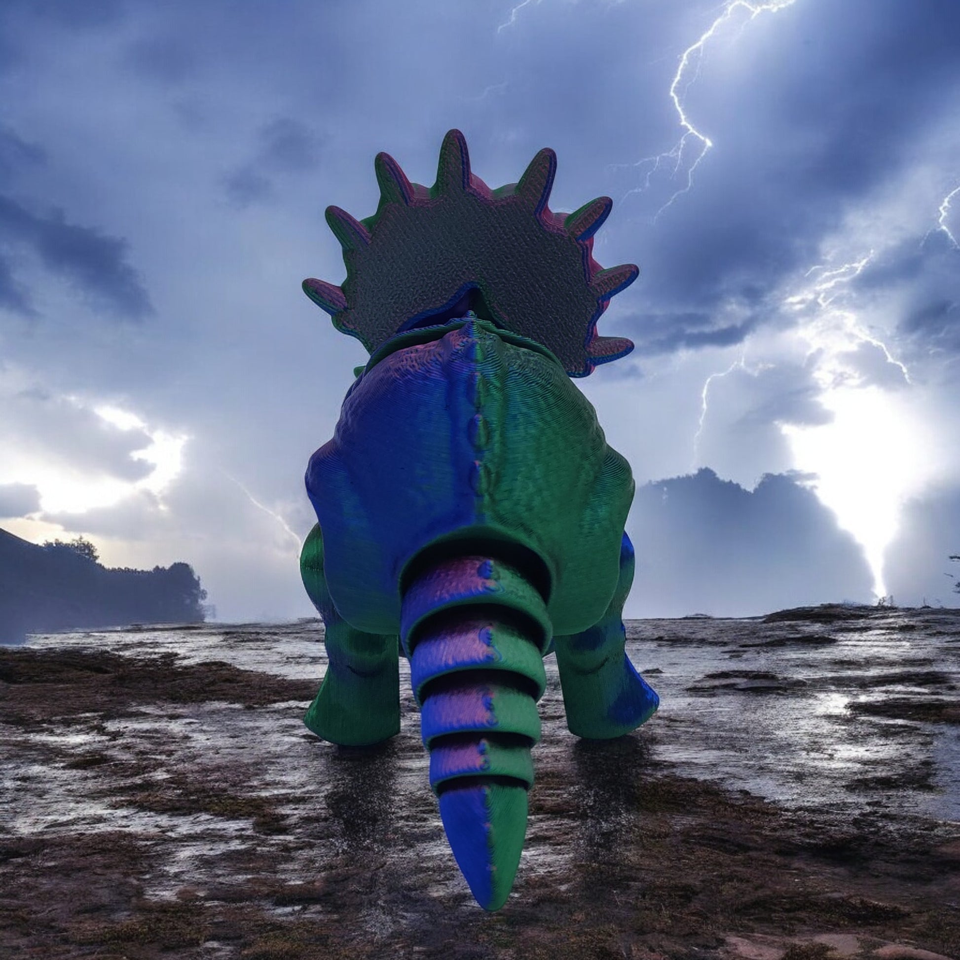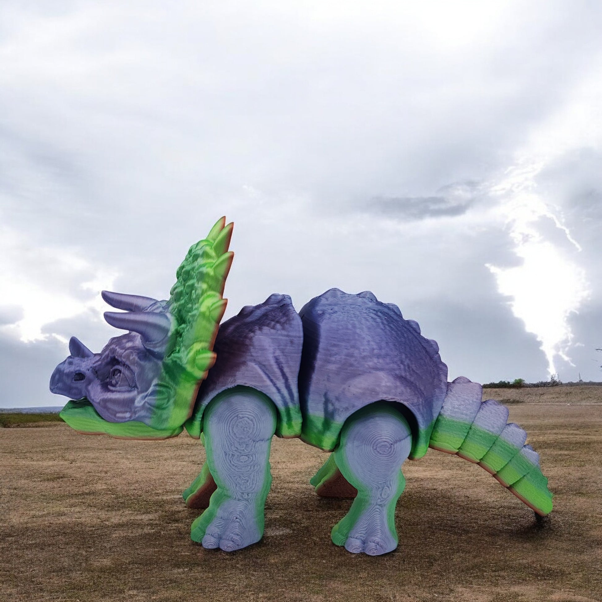 Standing 6.5 inches tall, this powerful collectible captures the strength and majesty of the iconic three-horned dinosaur. With a detailed frill, sturdy horns, and a bold stance, it brings prehistoric might to any collection. Choose from Warm, Cool, Neutral, or Rainbow Gradient color styles — each uniquely blended for a one-of-a-kind look.