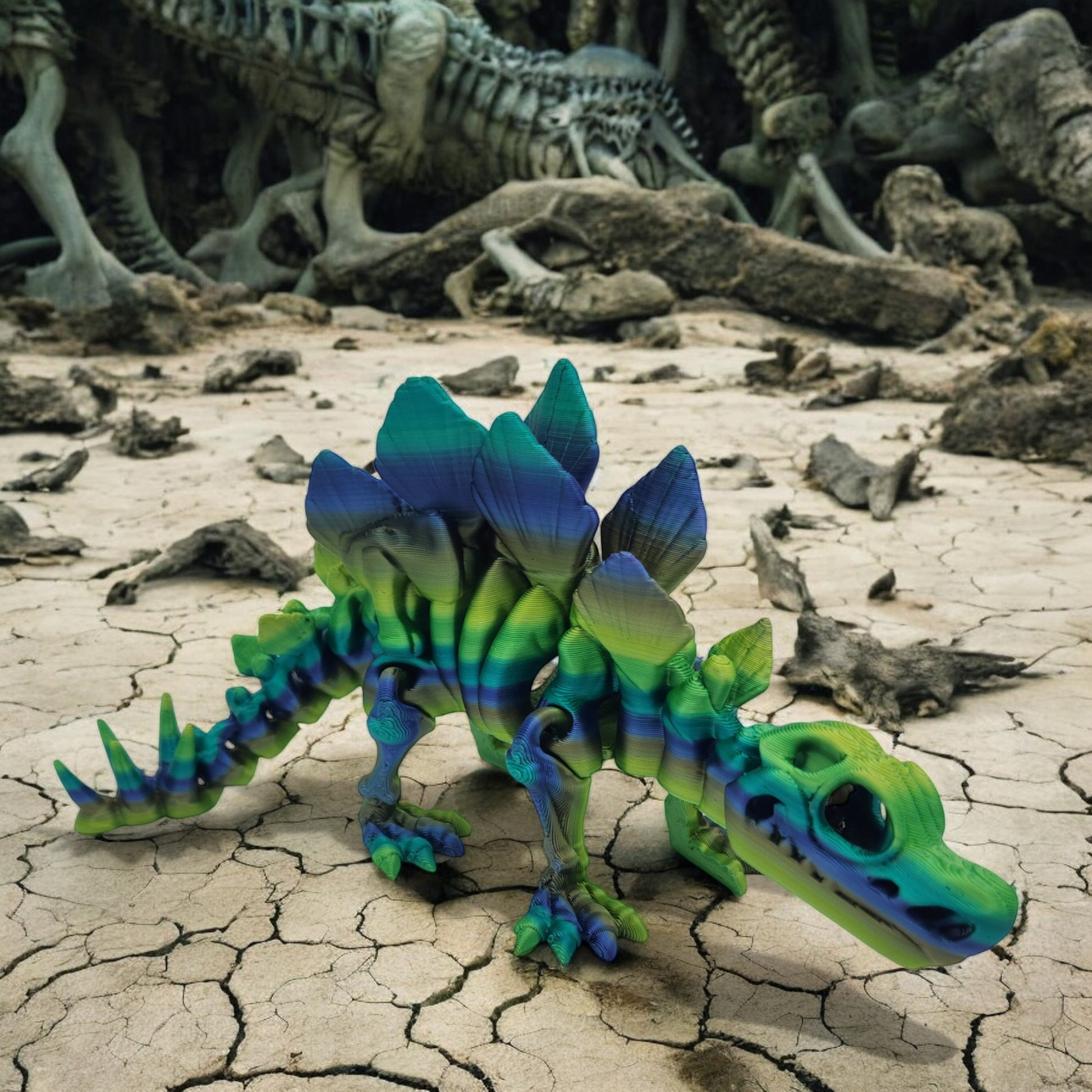 Standing 9.5 inches long, this haunting collectible gives a spooky twist to the prehistoric classic. With detailed bones, signature back plates, and a spiked tail, it captures the eerie beauty of the ancient Stegosaurus. Choose from Warm, Cool, Neutral, or Rainbow Gradient color styles — each uniquely blended for a one-of-a-kind look.