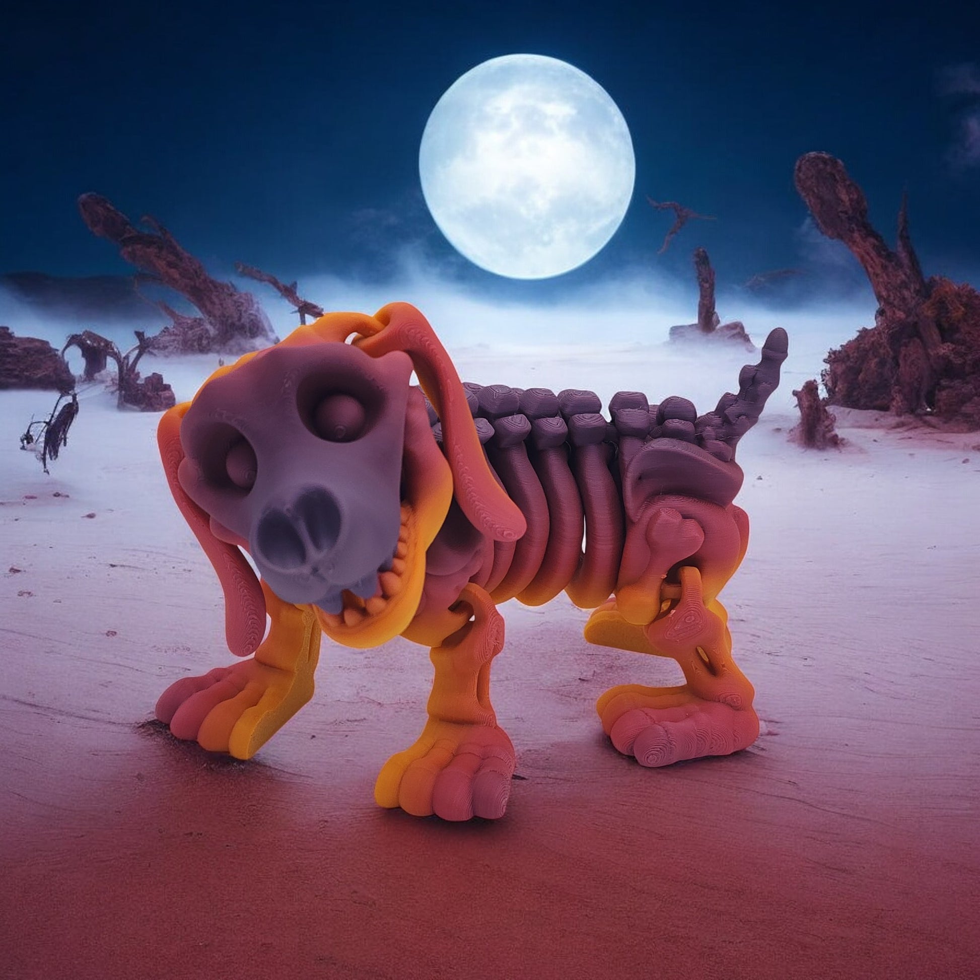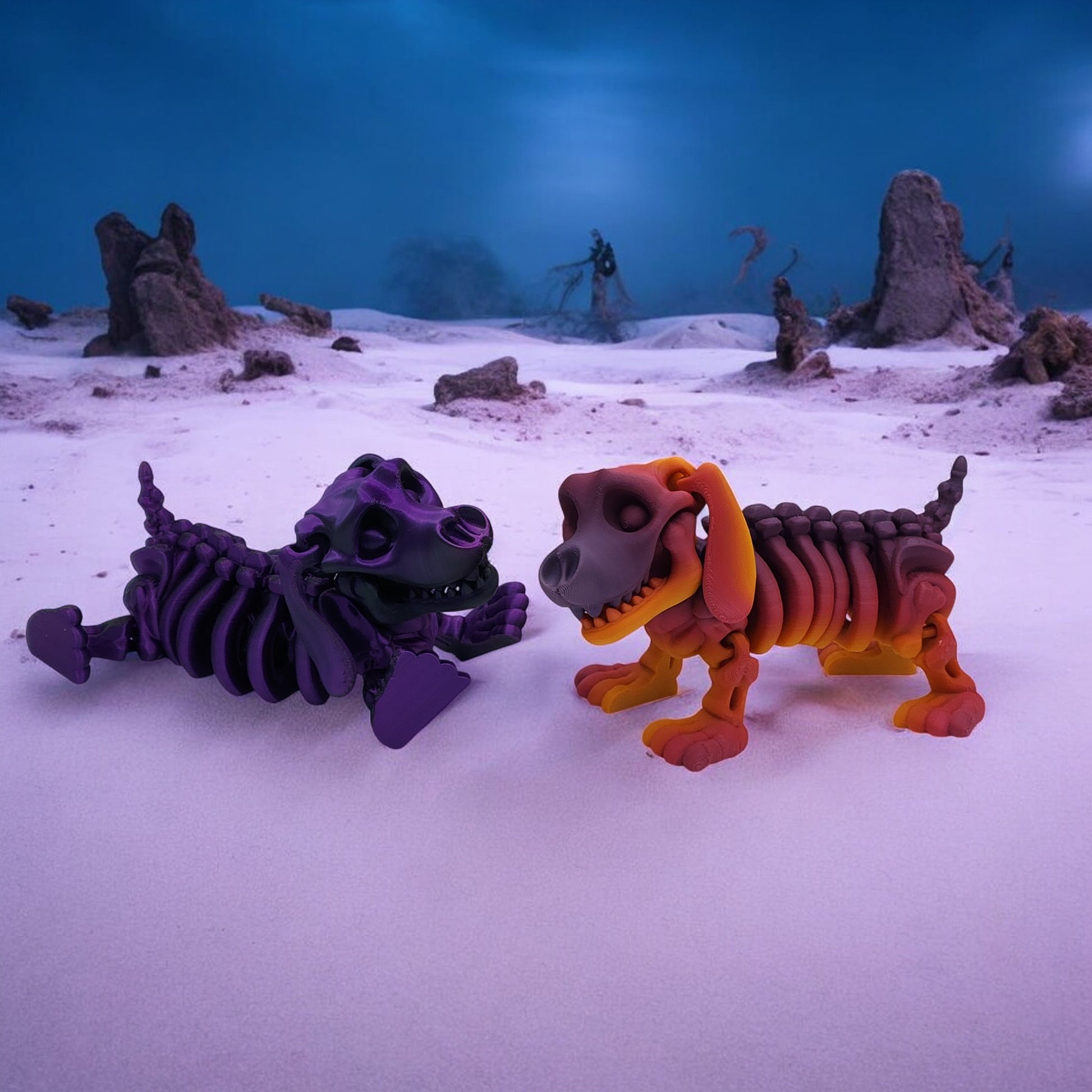 Standing 7 inches tall, this spooky-yet-loyal collectible blends canine charm with skeletal style. With detailed bones and a playful stance, it brings a perfect mix of fright and fun to any collection. Choose from Warm, Cool, Neutral, or Rainbow Gradient color styles — each uniquely blended for a one-of-a-kind look.