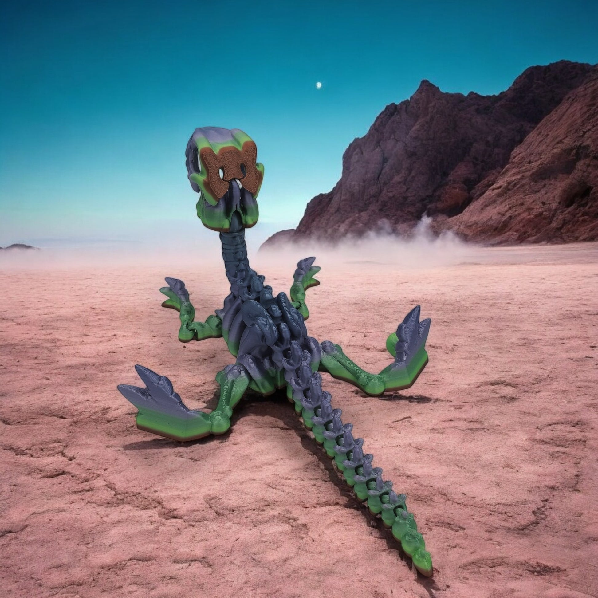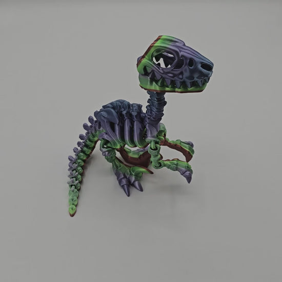 Standing 12 inches tall, this bone-chilling collectible captures the fierce spirit of a prehistoric predator in skeletal form. With finely detailed bones and sharp claws, it brings ancient mystery and power to any collection. Choose from Warm, Cool, Neutral, or Rainbow Gradient color styles — each uniquely blended to make every raptor one of a kind.