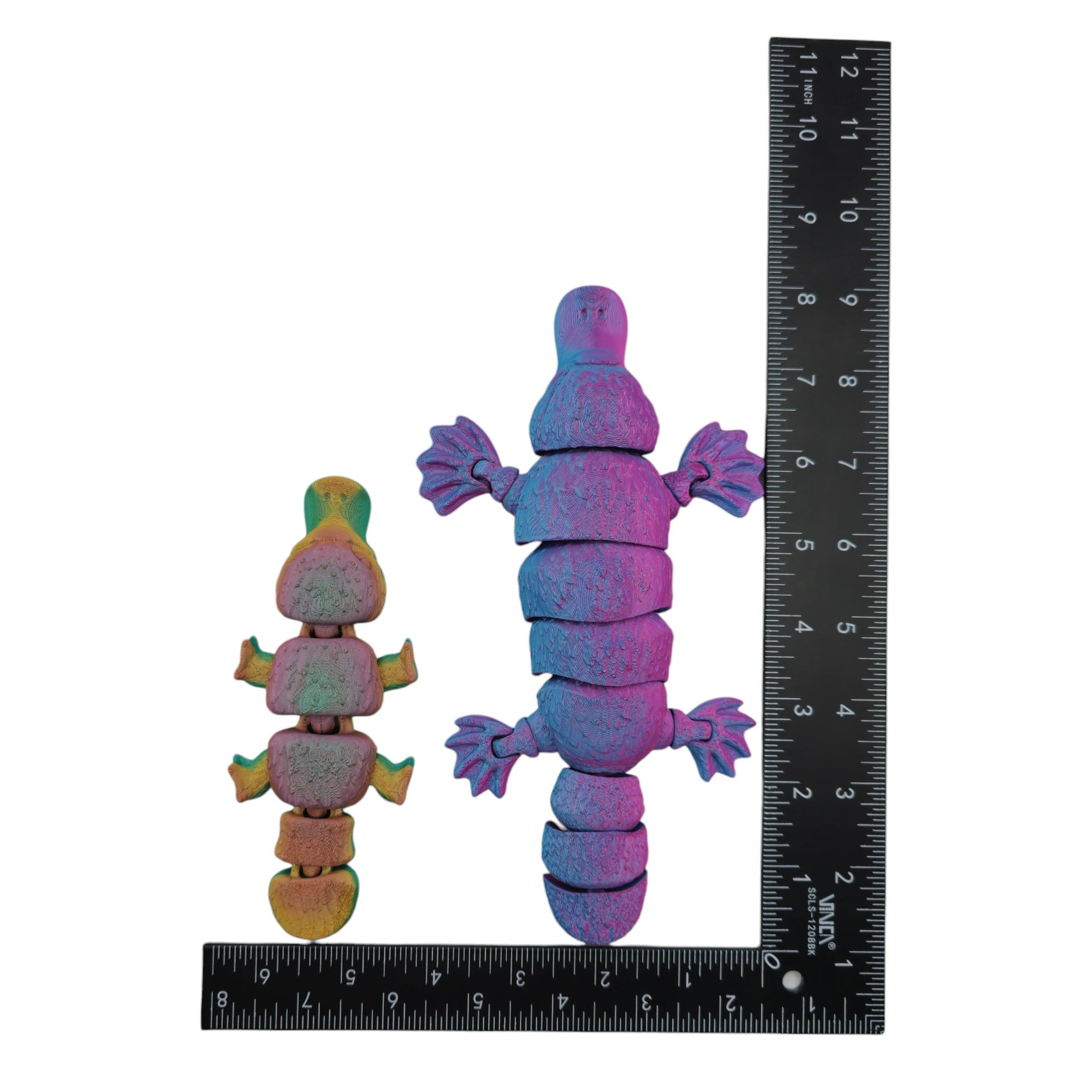 Available in Large (8.5") and Small (5.5") sizes, this delightful collectible captures the quirky charm of the beloved platypus. With its signature bill, webbed feet, and playful pose, it brings a splash of fun and personality to any collection. Choose from Warm, Cool, Neutral, or Rainbow Gradient color styles — each uniquely blended for a one-of-a-kind look.