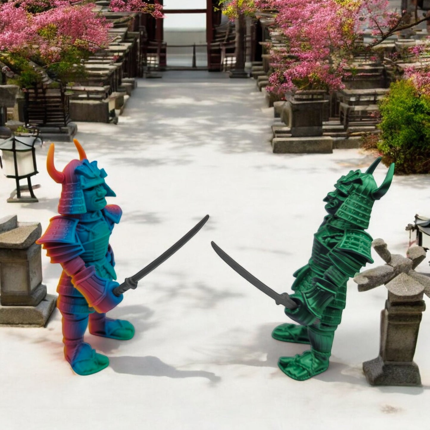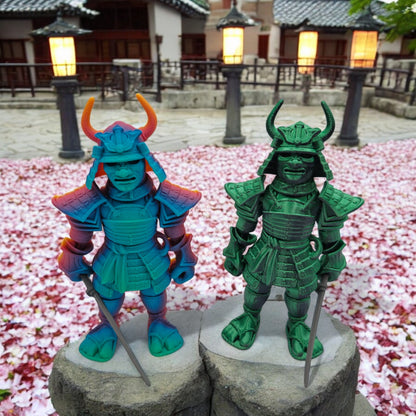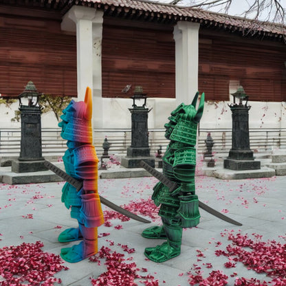 Standing 8 inches tall, this striking collectible captures the honor and strength of a legendary warrior. With detailed armor and a fierce stance, it brings the spirit of ancient Japan to life. Choose from Warm, Cool, Neutral, or Rainbow Gradient color styles — each uniquely blended to make every samurai one of a kind.